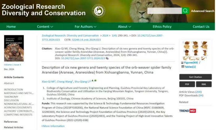 图为国际学术期刊杂志Zoological Research: Diversity and Conservation 2024年12月杂志封面。来源:新华社