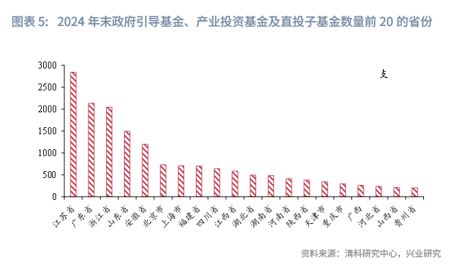 截至2024年末,我国由政府出资或主导的引导基金、产业投资基金,以及其下属对应的各类直投子基金,合计数量超过1.7万支,对于财政实力较好的省市地区,如江苏、浙江、广东等地,上述各类基金数量均超过2000支。近年来,部分地区已经开始了存量基金的整合。例如,福建省于2021年出台了《福建省级政府投资基金设立方案》,设立福建省级政府投资基金,对福建省企业技术改造基金、福建省政府和社会资本合作(PPP)引导基金、福建省现代服务业产业发展基金、福建省海西养老产业投资基金、福建省盐业发展股权投资基金以及福建省文化产业发展投资基金等6支政府引导基金进行整合,原有子基金的协议、合同和投资项目不变,但整合后主管部门由5个变为1个,更容易统一管理、形成合力,提高财政资金使用效率。