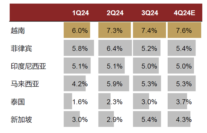 图表2:2024年1-4季度东南亚六国GDP增速对比