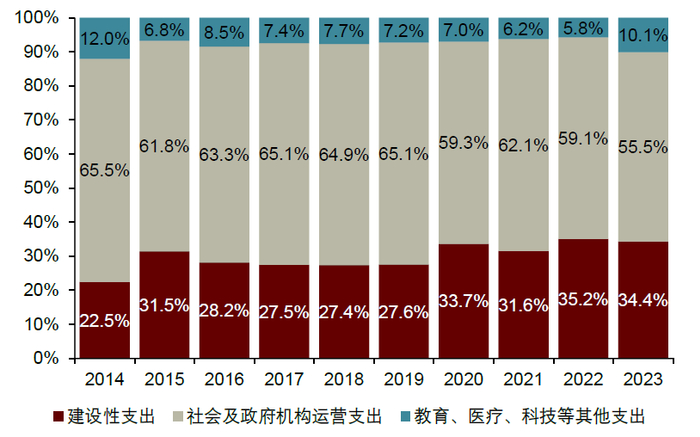 图表5:2014-2023年建设性的财政支出具备提升空间