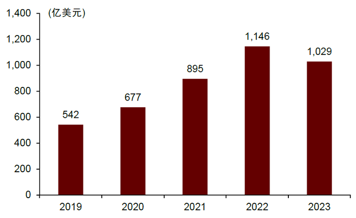 图表8:2023年对美国贸易顺差额最大的五个国家或地区