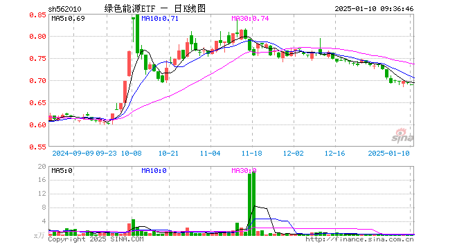 1月10日,绿色能源ETF(562010)开盘跌0.43%,报0.690元。绿色能源ETF(562010)重仓股方面,宁德时代开盘跌0.34%,长江电力涨0.00%,比亚迪跌0.14%,阳光电源跌0.17%,隆基绿能跌0.20%,通威股份涨0.00%,亿纬锂能跌0.27%,华友钴业跌0.39%,赣锋锂业跌0.23%,川投能源跌0.12%。