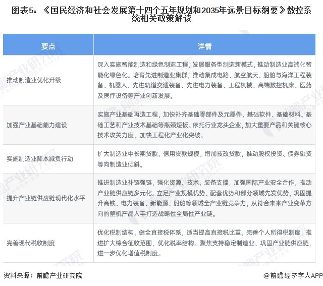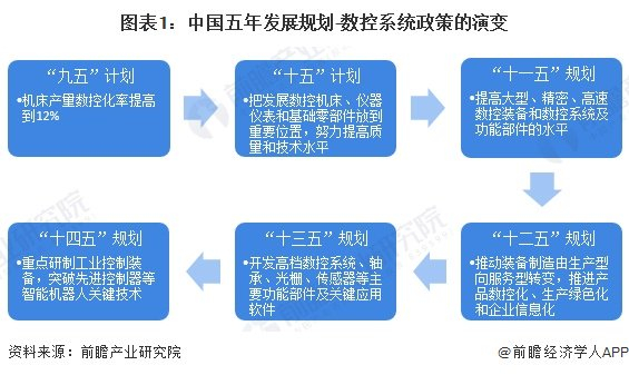 中国“九五”计划至“十四五”规划,国家对数控系统行业的支持政策经历了从“机床产量数控化率提高到12%”到“把发展数控机床放到重要位置”“提高大型、精密、高速数控装备和数控系统及功能部件的水平”再到“推动装备制造由生产型向服务型转变,推进产品数控化、生产绿色化和企业信息化”“开发高档数控系统”的变化。