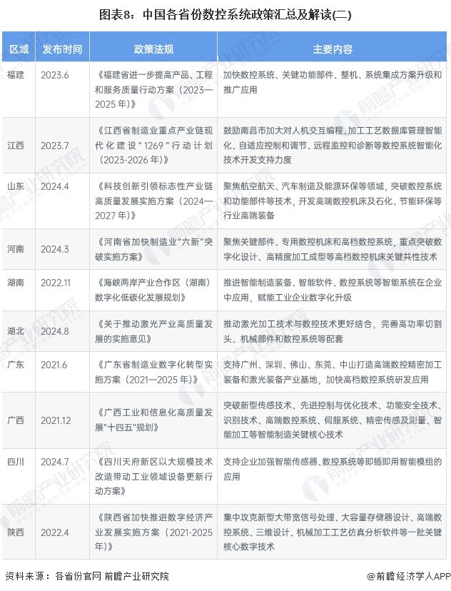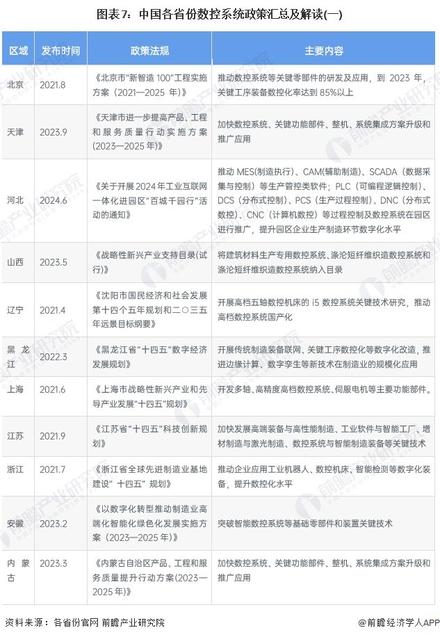 在数控系统领域,我国多数地区纷纷出台相关政策,鼓励数控系统等关键零部件的研发和应用。