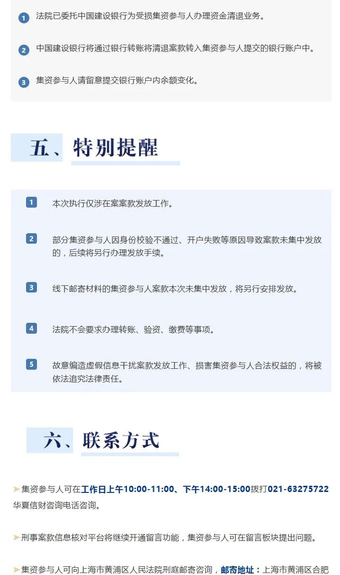 由于该案涉及集资参与人多、地域广泛、收集核对信息工作量巨大,为了有利于便捷、及时发放集资参与人投资款、保障集资参与人合法权益,本院上线刑事案款信息核对平台公告。