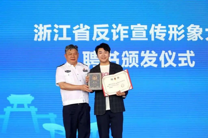 2024年8月5日,浙江省第二届反诈宣传形象大使聘任仪式在绍兴市上虞区举行,著名钢琴家郎朗受聘成为浙江省反诈宣传形象大使。浙江在线 资料图