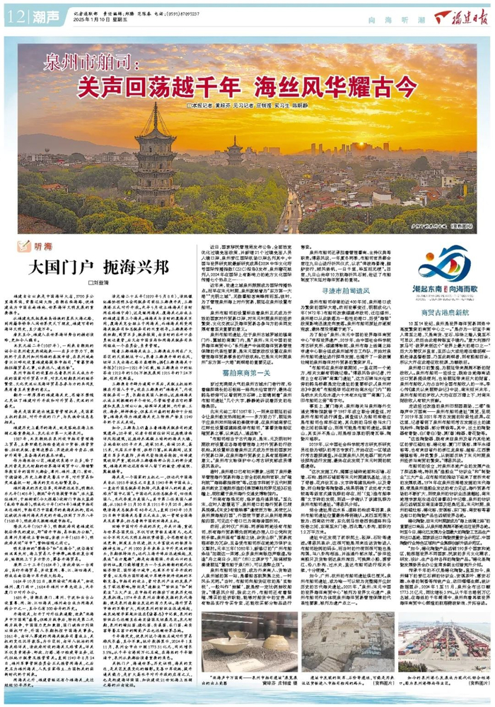 今天,以泉州市舶司遗址为切入点,《福建日报》专版报道泉州从千年古港到万亿名城,在海丝的千年潮涌中,向着再续世界海洋商贸中心辉煌的航程劈波斩浪、开拓奋进的传奇故事。