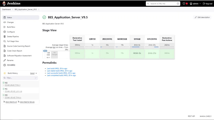 在宝兰德应用服务器软件、云原生消息流软件、消息中间件软件的DevOps流水线中,增加鲲鹏的构建流程,基于鲲鹏服务器以及openEuler操作系统,搭建了持续开发集成环境。在构建流程中接入鲲鹏DevKit流水线门禁,通过该门禁源码扫描以及代码迁移扫描,确保构建产物与鲲鹏的适配性,全面优化在鲲鹏上的开发及运行效率。此外还接入了毕昇编译器、鲲鹏测试框架、性能分析插件、版本漏洞扫描插件等,进一步提升版本的性能、测试效率和质量。