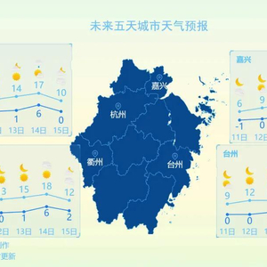 杭州,预计今天最高气温5℃,14日将升至17℃,直逼20℃。