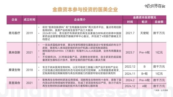 近两年来,金鼎资本接连出手,赋能了思元医疗、美央创新等多个医美企业,其中思元医疗、摩漾生物、圣至润合均为再生材料研发企业,美央创新为医美器械生产企业。