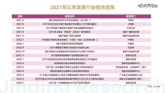 ●政策推动合规化发展:1994年我国在医美行业出台了两项重要政策:《医疗机构诊疗科目名录》和《医疗机构基本标准》,这两项政策首次将“医疗美容科”正式列为医疗机构的“一级诊疗科目”,规定了美容医院、医疗美容门诊部、医疗美容诊所和综合性医院医疗美容科等医疗美容机构的基本标准,这也是国家首次正式承认医疗美容行业,标志着行业开始规范化发展。2021年,国家密集出台政策法规,市场进入强监管阶段。在多方面的共同努力下,医美市场的混乱现象得到有效整治,行业生态呈现出明显的改观趋势,整个医美行业的发展环境朝着更加规范、健康的方向迈进。