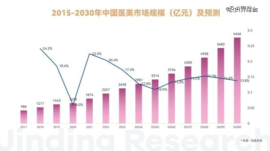 在中国,2023年医美市场规模达2648亿元,年增长率为17.3%,*全球平均水平。预计到2030年,市场规模将达6466亿元,年复合增长率约为13.8%。