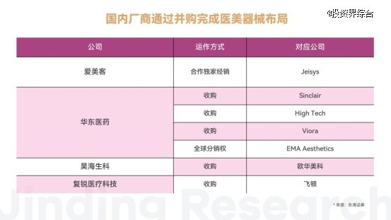 由于时间成本较大以及自研难度较高,国内头部综合性大型医美龙头通常选择收并购来完成医美器械布局,而奇致激光、普门科技等专业光电企业则是集中自研。