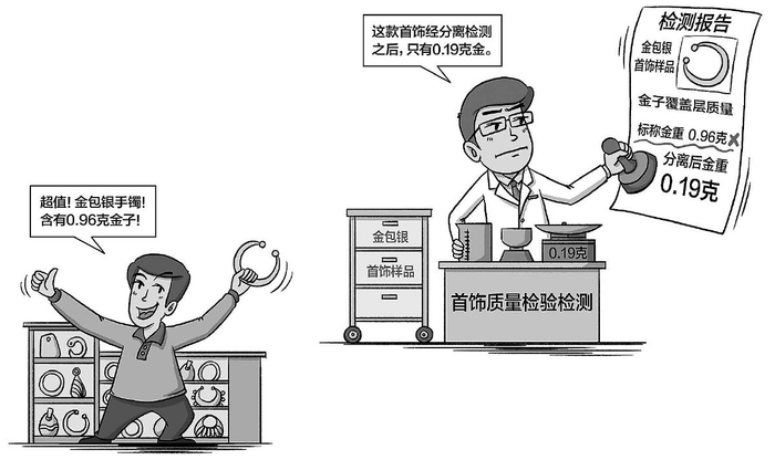 此外,关于金包银中到底有多少克金子,王健表示,如果厂家或商家有充分证据证明金覆盖层的纯度、质量,可予以标示,但想要做到“充分证明”,恐怕不那么容易。“我能想到的,就是把生产过程全程开着直播,先测金子的含量是不是足金,再测银基底的质量,最后把金子包上之后再测质量的差值,这样确实能知道这款产品含有的足金质量。但你最终销售的产品是不是直播里的这一件?如果你用镀金的工艺,怎么能保证镀上的是足金?这些问题都是很难证明的。”本报记者 莫凡 宗媛媛 文宋溪 插图