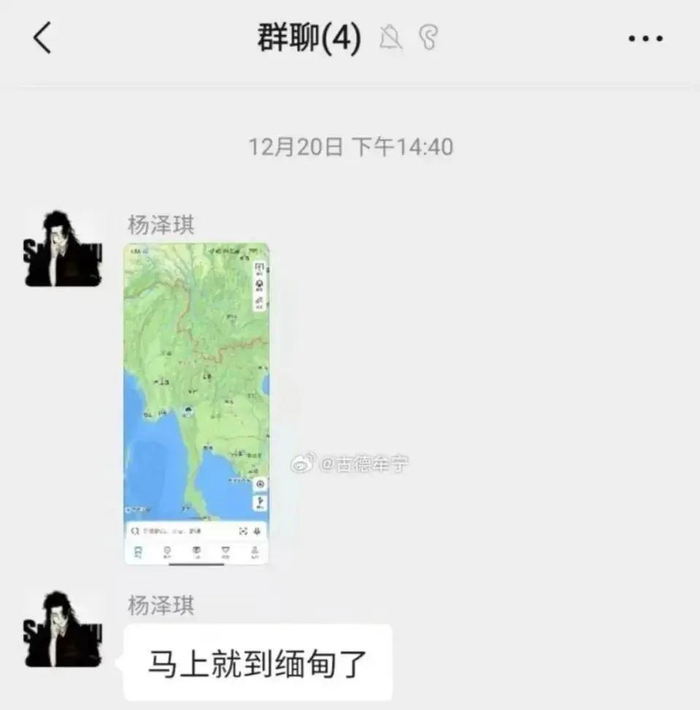 2024年12月20日凌晨,杨泽琪在北京大兴机场乘坐VZ3719航班,于当地时间6时16分抵达曼谷素万那普机场,落地后乘坐剧组接机车辆离开机场。北京时间14时59分,杨泽琪换乘第二辆剧组安排的车辆,定位显示已经在泰缅边境。