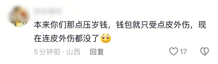 在春节期间,倡议少发压岁钱、提倡发不超过20元的小额压岁钱,提倡晚辈向长辈送上有意义的“祝福礼”,让压岁钱回归年俗祝福本真。