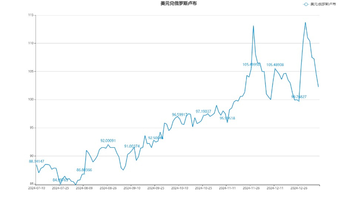 不过,卢布贬值之势未能持久,得益于开辟国外外汇供应新渠道,币值迅速小幅反弹。截至2024年底,美元兑卢布汇率稳定在100卢布上下,欧元兑卢布汇率约在106卢布附近。全年卢布对美元贬值近11%,对欧元贬值6.4%。接受《福布斯》采访的金融家表示,2025年卢布可能继续贬值。根据俄罗斯央行的数据,俄罗斯人的外币资产投资规模自2022年以来就没有下降过,甚至还在继续增长。