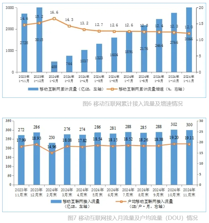 根据工信部公布的数据显示,2024年前11个月,通信业整体运行态势平稳,但环比来看增速仍在下滑,形势不容乐观。绝对数字上,电信业务量收还是实现正向增长,5G、千兆光网、物联网等网络基础设施建设深入推进,连接用户规模持续扩大,移动互联网接入流量较快增长。