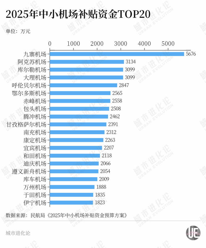 民航局已经公布新一年的补贴方案,2025年将对188座中小机场补贴24亿元,其中去年客流降幅最大的九寨机场获得补贴最高,达到5676万元。此外,遵义新舟机场将获得2054万元补贴、遵义茅台机场也将获得1686万元补贴。