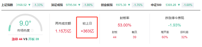 沪指放量大跌1.33%创阶段性新低 创业板指跌1.76% 全市下跌个股超4800只。市场午后弱势震荡,三大指数持续走弱,尾盘均跌超1%。截至收盘,上证指数跌1.33%,,创近3个月以来新低,深证成指跌1.8%,创业板指跌1.76%。全市个股跌多涨少,全市下跌个股超4800只;全市全天成交1.15万亿元,较上一日放量成交363亿元,内资主力资金净卖出471.8亿元。