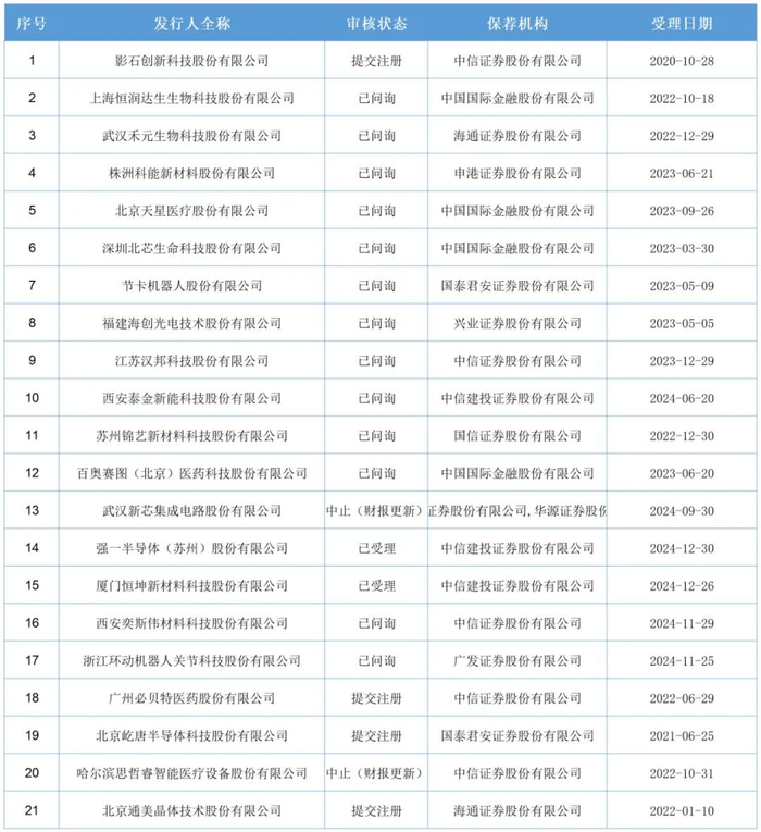 截至1月9日,上交所科创板更新的IPO企业名单中,4家提交注册,2家已受理,13家已问询,中止2家。