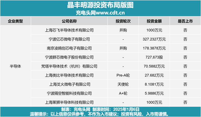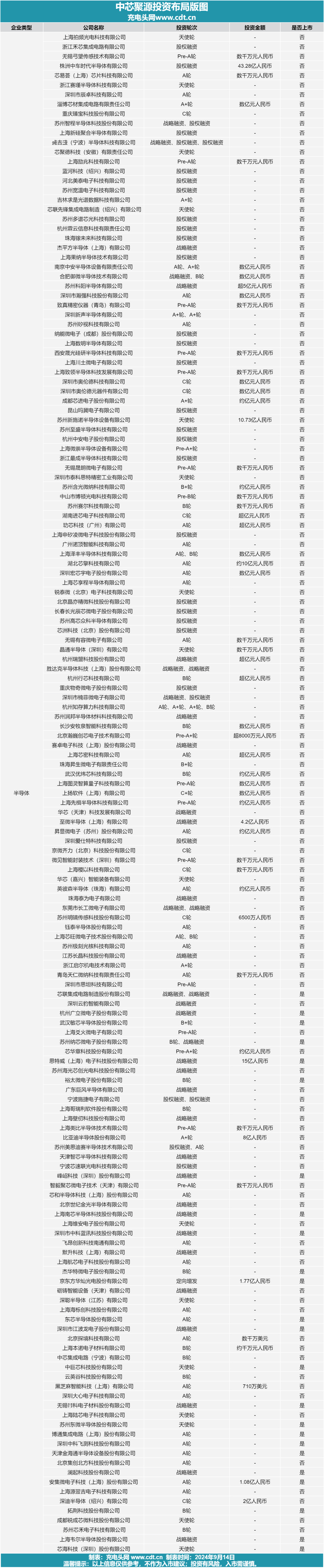 中芯聚源在半导体领域投资广泛且成果丰硕。公司专注于集成电路行业相关领域,对产业链中的材料、设计、装备、IP和服务等环节的优质企业进行投资,如韦尔股份、纳芯微、中芯集成、南芯科技、裕太微等,覆盖从早期到成长期再到成熟期的企业。据充电头网不完全统计,中芯聚源对外投资的159家半导体企业中,上市公司有24家。