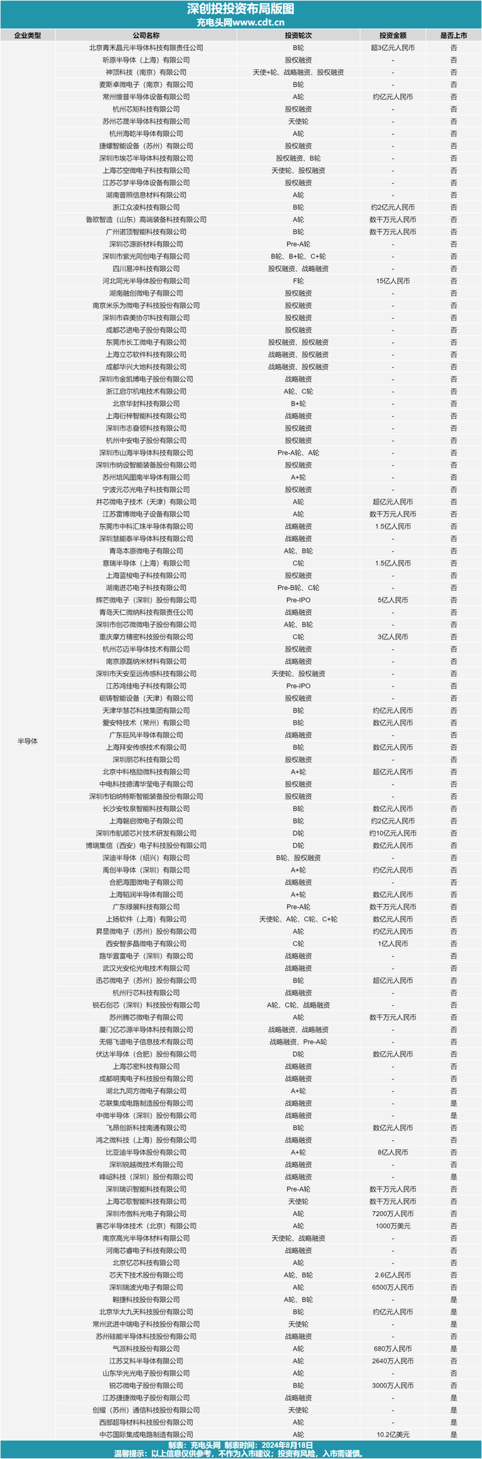 深创投在半导体领域有广泛且深入的投资。据充电头网不完全统计,深创投对外投资的半导体企业有114家,其中上市公司有11家。全面覆盖了半导体产业链,包括芯片设计、制造、封装测试到半导体设备和材料等各个环节,促进产业的整合与升级。