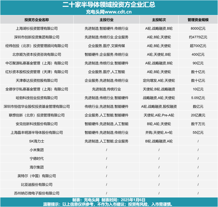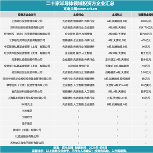 本文将统计如下表格中的二十家投资半导体领域的企业和投资机构,分析他们的在半导体领域的投资情况,为读者们提供更多有价值的参考。