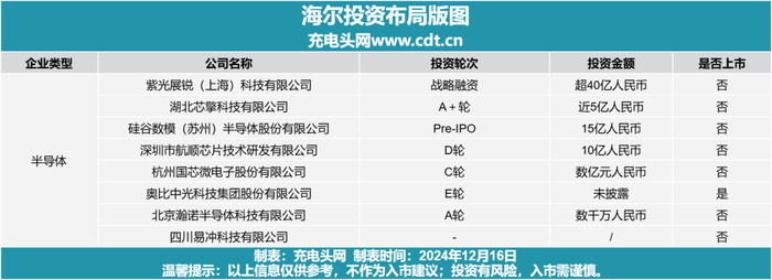 海尔在半导体领域进展显著,精准投资多家半导体企业,完善产业链布局,涵盖设计、制造、封装测试等环节。据充电头网不完全统计,海尔对外投资的这8家半导体企业中,上市公司有1家。海尔集团在半导体领域的深耕细作,展现了其前瞻性的战略眼光和卓越的产业洞察力。