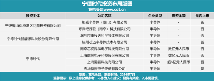 据充电头网不完全统计,宁德时代对外投资半导体相关企业有8家,上市公司有1家。投资半导体领域有助于宁德时代构建更完整的产业生态,加强与产业链上下游企业的合作与协同发展。通过与半导体企业的合作,能够在电池、芯片、汽车制造等领域形成协同效应,提升公司在整个产业中的影响力和话语权。