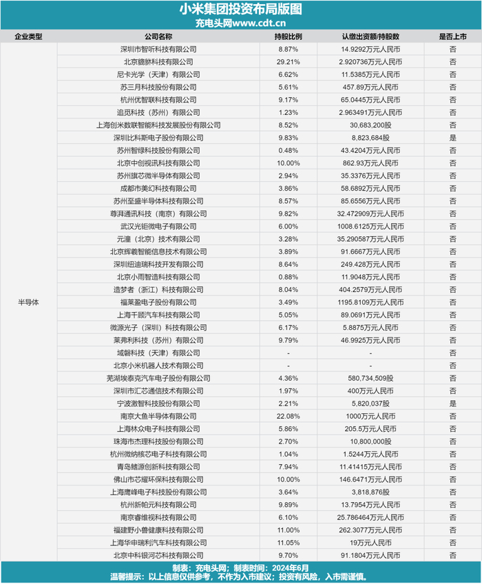 小米集团对外投资领域主要集中在半导体和新能源,这些投资不仅展示了小米对前沿科技的深度布局,也凸显了其推动产业创新与发展的决心。