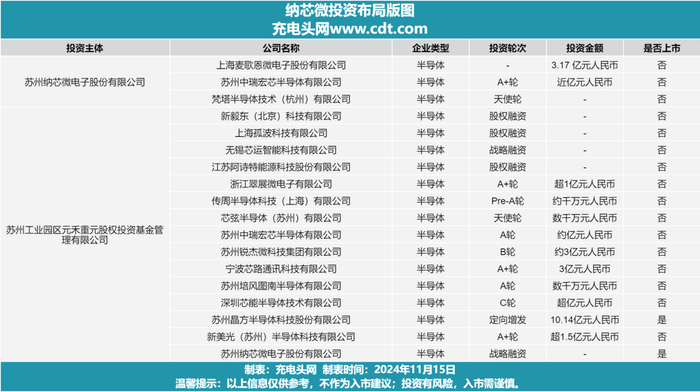 据充电头网不完全统计,纳芯微对外投资的这18家半导体企业中,上市公司有2家,占比为11.11%;非上市公司16家,占比88.89%。