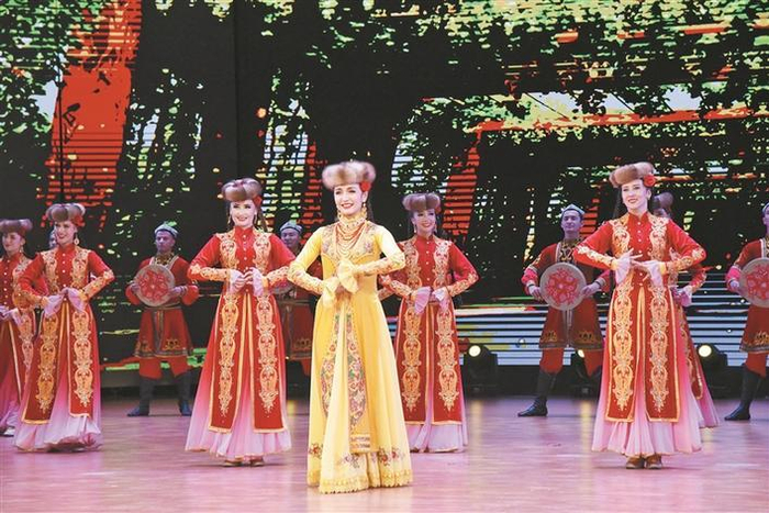 喀什地区歌舞剧团来到三师图木舒克市,开展兵地融合慰问演出活动,加大兵地文化交往交流交融力度,增进兵地职工群众之间的情谊(资料图片)。黄斌 摄