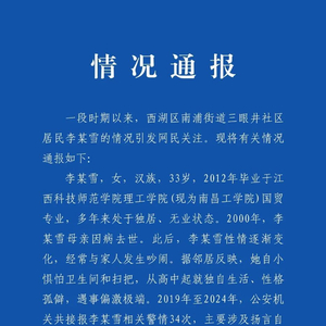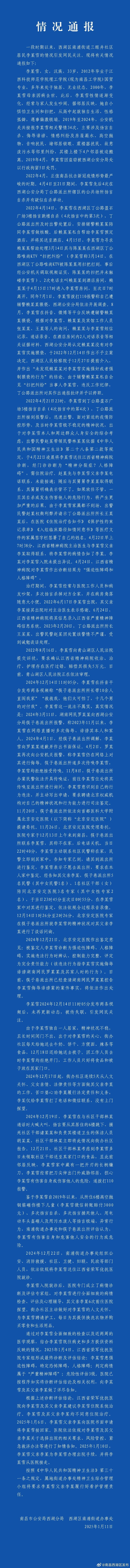 江西南昌西湖区详细通报李某雪事件