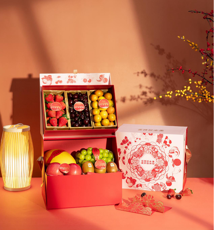 春节联名系列礼盒包含春节限定礼盒、通用组装礼盒、招牌红芭蕾草莓礼盒以及进口车厘子礼盒。其中,春节限定礼盒为双层结构,集齐了6-7种时令高端水果,并附有苏绣纹样定制红包等周边礼品。通用组装礼盒包括紫气东来水果礼盒和红运当头水果礼盒两款,消费者可根据预算和需求灵活组装。招牌红芭蕾草莓礼盒中的草莓来自南京金色庄园,这个占地8000亩的全国最大草莓单体园区,采用超高垄种植与零农残技术,并通过多项国际认证,确保每一颗草莓个大味甜、奶香浓郁。同时,进口车厘子礼盒则精选智利黄金产区的优质果实,凭借产区的天然优势与百果园的先进供应链及严格品控,将这份来自远方的甜蜜新鲜送达消费者餐桌。