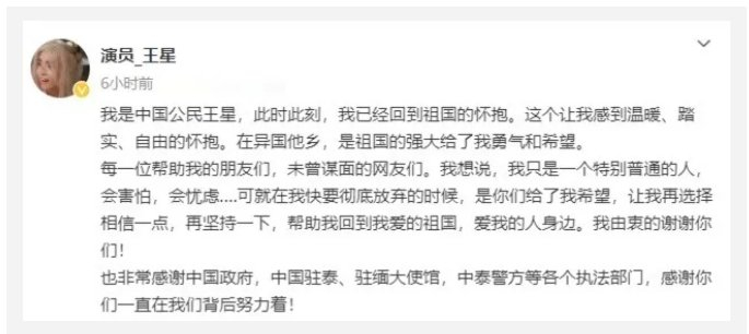近期,中国演员王星因接受异国工作邀请被骗陷入缅甸诈骗园区一事引发舆论广泛关注。