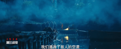 氤氲着浓雾的江边,一排排战士正手持枪支,悄然向前,远处的忽明忽暗的火光映衬出了他们井然有序的队容,近处仰视的视角得以窥见队伍之漫长。左边的桥和远处的河岸,共同构成了三角形的稳定构图。这是红军行军路上的常见一幕,也是剧中令人印象深刻的一幕战争场景。战争中萧瑟的氛围、艰难的行军环境、红军们超强的团队战斗力,一张截图即可窥见万千。