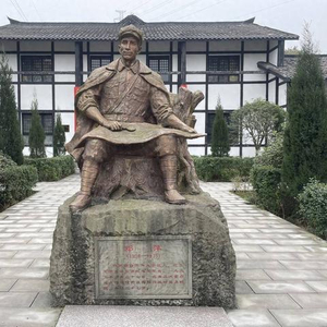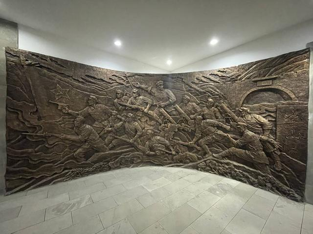 邓萍同志牺牲情景雕塑,雕塑后为红军烈士英烈墙