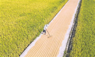 贵安新区高峰镇龙宝村晒谷忙。