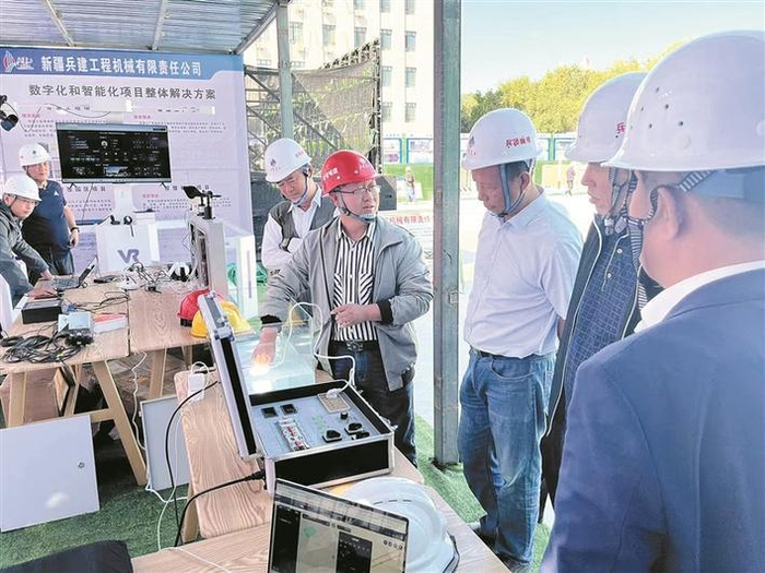 兵团建工集团所属企业的智能安全帽与智慧安全用电产品出现在兵团房屋市政工程质量品质提升和质量多发问题整治现场观摩交流培训活动中(摄于2024年9月12日)。徐海瑛 摄