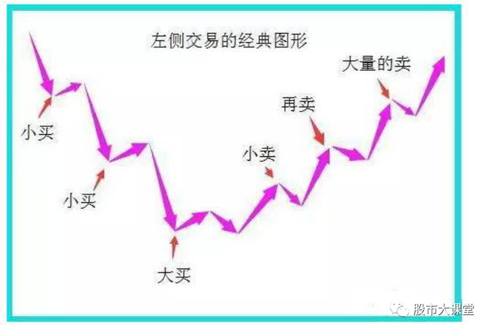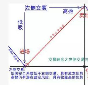 左侧交易,由于在拐点前,交易纪律,一般逐步买入,分批性抛出,因为在上升途中抛出,所以,对买点要求不高,而抛点比较精确。