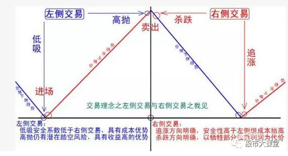 1、在股价上涨时,以股价顶部为界,凡在“顶部”尚未形成的左侧高抛,属左侧交易,而在“顶部”回落后的杀跌,属右侧交易;