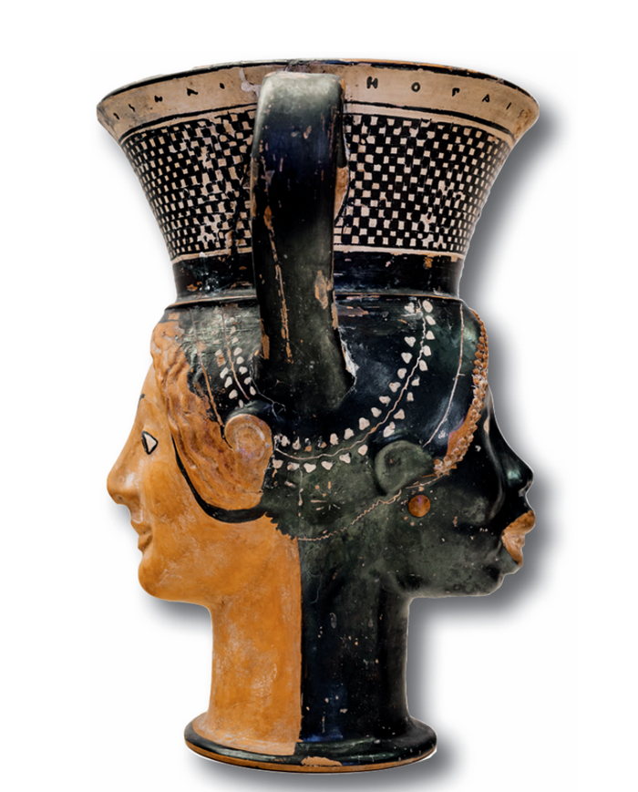 形状为黑人和白人双头的康塔罗斯酒杯,来自塔尔奎尼亚,约公元前510年。图片来自分册《罗马风云》“中心与边缘·罗马世界的黑人”一节