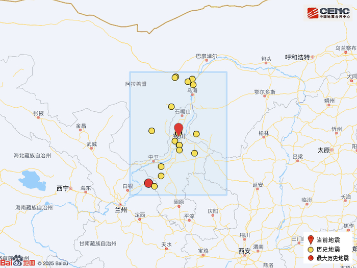历史地震:根据中国地震台网速报目录,震中周边200公里内近5年来发生3级以上地震共23次,最大地震是2023年12月31日在甘肃白银市平川区发生的4.9级地震(距离本次震中215公里),历史地震分布如图。