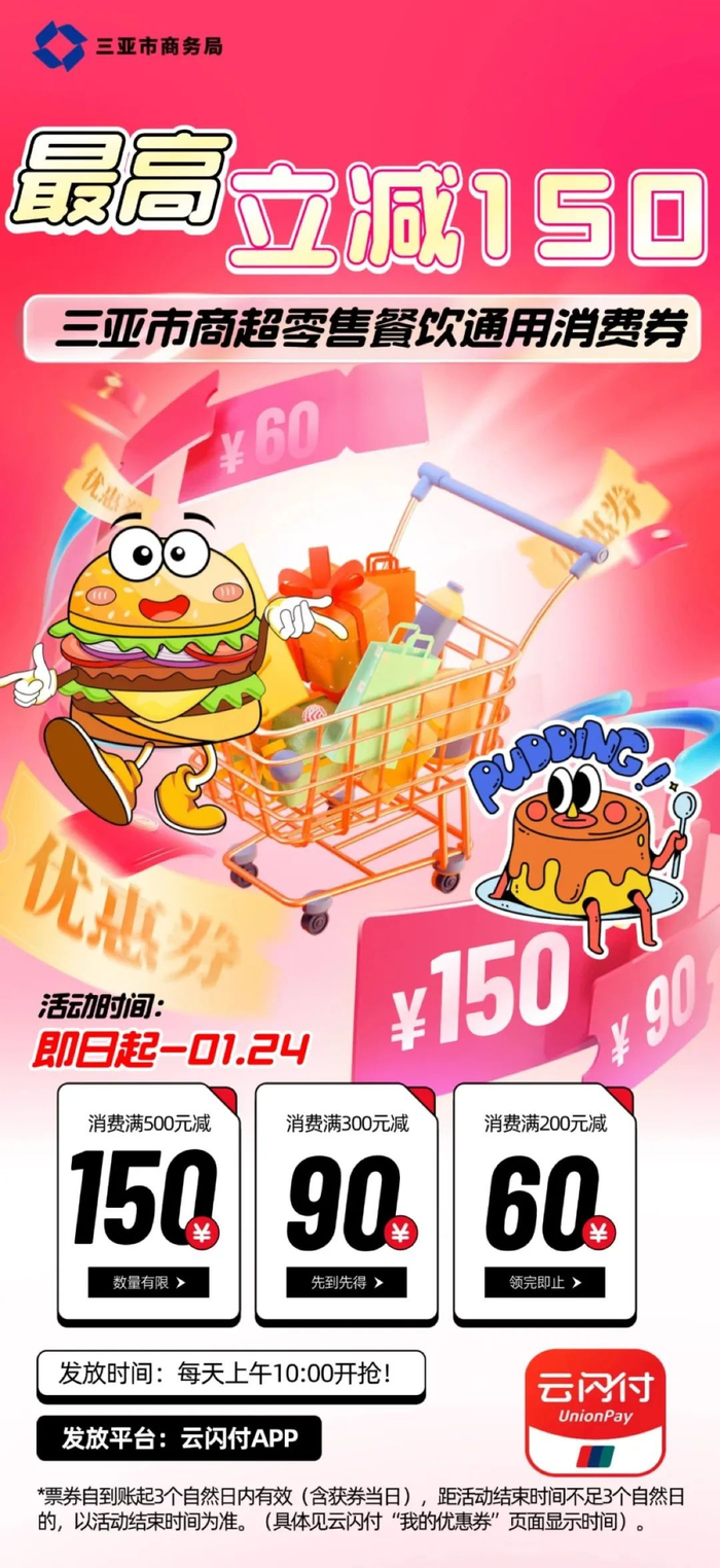 即日起至2025年1月27日每天10:00-23:00手机定位三亚市 在云闪付APP