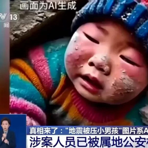 据央视新闻报道,近日,西藏日喀则市定日县发生的6.8级地震,牵动人心,然而,一些人为了博取流量趁机杜撰地震视频,发布大量不实信息,误导公众。其中一系列“小男孩被埋图”在网络上广泛传播,并配文日喀则地震等关键词,引发大量网民关注。