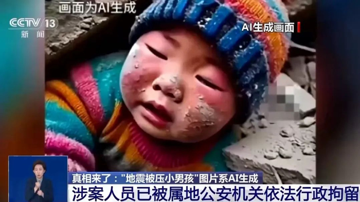 记者10日从公安部网安局了解到,鉴于该图片存在明显AI生成痕迹,公安机关网安部门迅速开展核查,经查,上述图片确由AI工具创作,原作者在2024年11月18日发布了相同画面的短视频,并未关联地震且声明是AI生成。经查,青海某网民为博取眼球,将“小男孩被埋图”与日喀则地震相关的信息进行关联拼凑、移花接木、混淆视听、误导群众,致使谣言信息传播扩散。目前,该涉案人员已被属地公安机关依法行政拘留。
