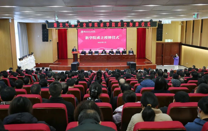 当日上午,学校还举行了新学院授牌仪式。仪式上宣读了《湖北汽车工业学院学科学院优化调整方案》《湖北汽车工业学院关于二级学院设置调整的决定》,并现场为新学院授牌。同时,举行了新闻发布会,学院相关负责人就优化调整工作进行了解答。