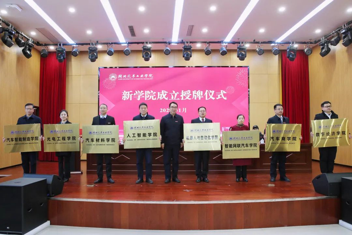 新组建了光电工程学院、新能源学院、人工智能学院、机器人与自动化学院、智能网联汽车学院、汽车商学院、数字经济学院、法学院/知识产权学院、外语外贸学院、东风汽车工程师学院/智能汽车现代产业学院、汽车智能装备产业学院、汽车未来技术学院等12个学院。