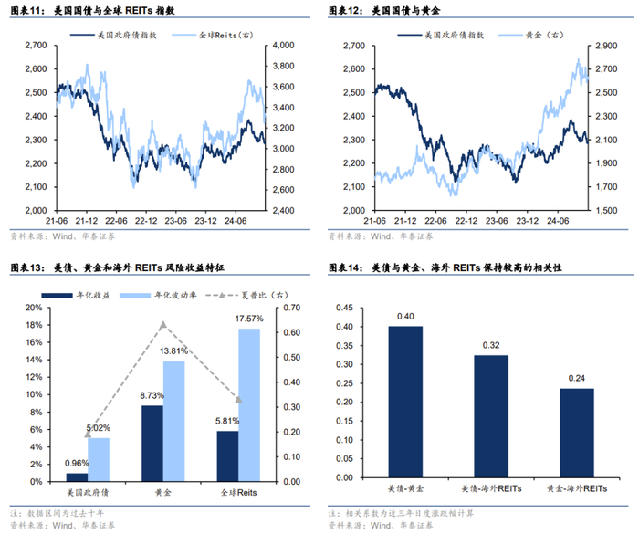 3)对于风险偏好更高的投资而言,可以通过投资长久期债基、海外REITs以及黄金等类美债资产获得更高的收益弹性。